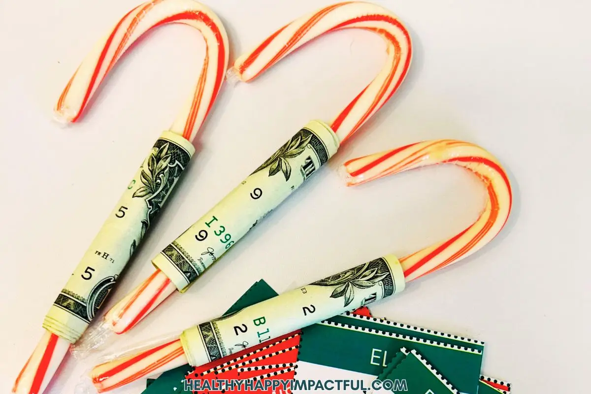 - $1 bills (taped to the candy canes)