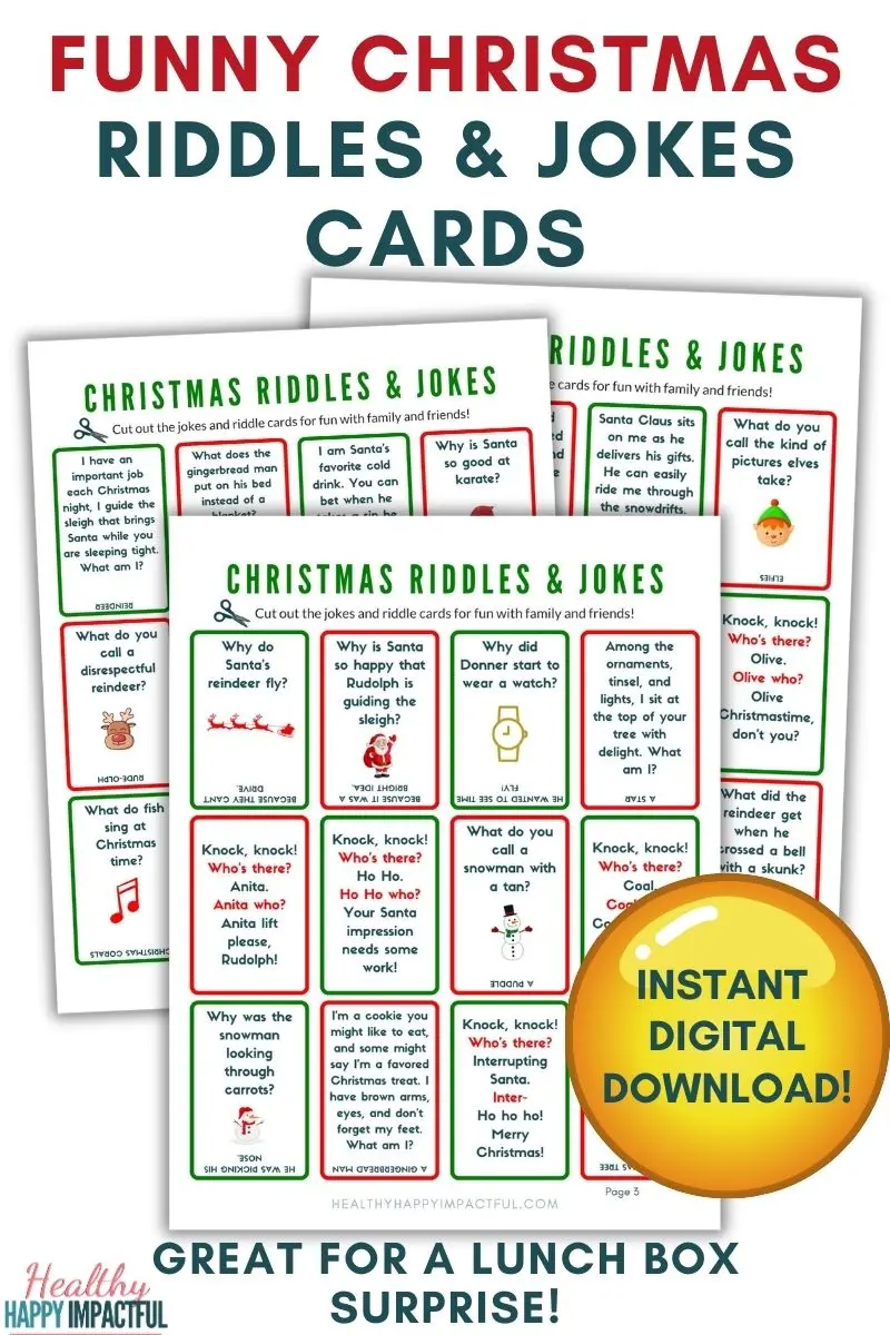 Next, these rhyming ‘What am I?’ Christmas riddles will be a hit on any holiday occasion.